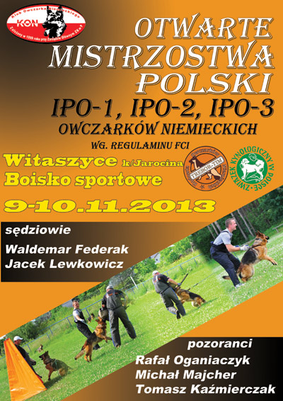 Mistrzostwa Polski IPO-1, IPO-2, IPO-3 Owczarków Niemieckich, Jarocin 9-10 Listopada 2013r.